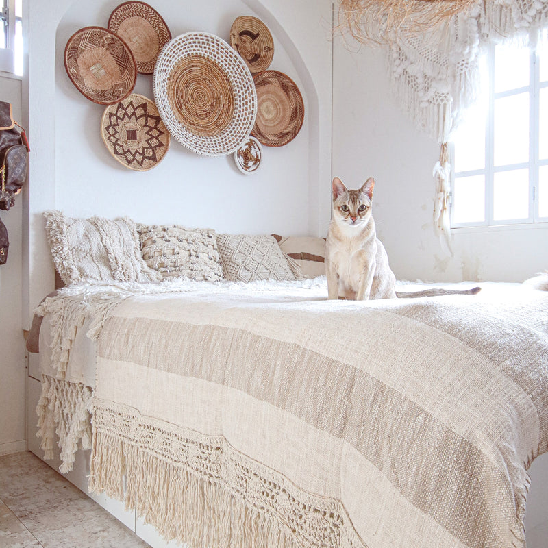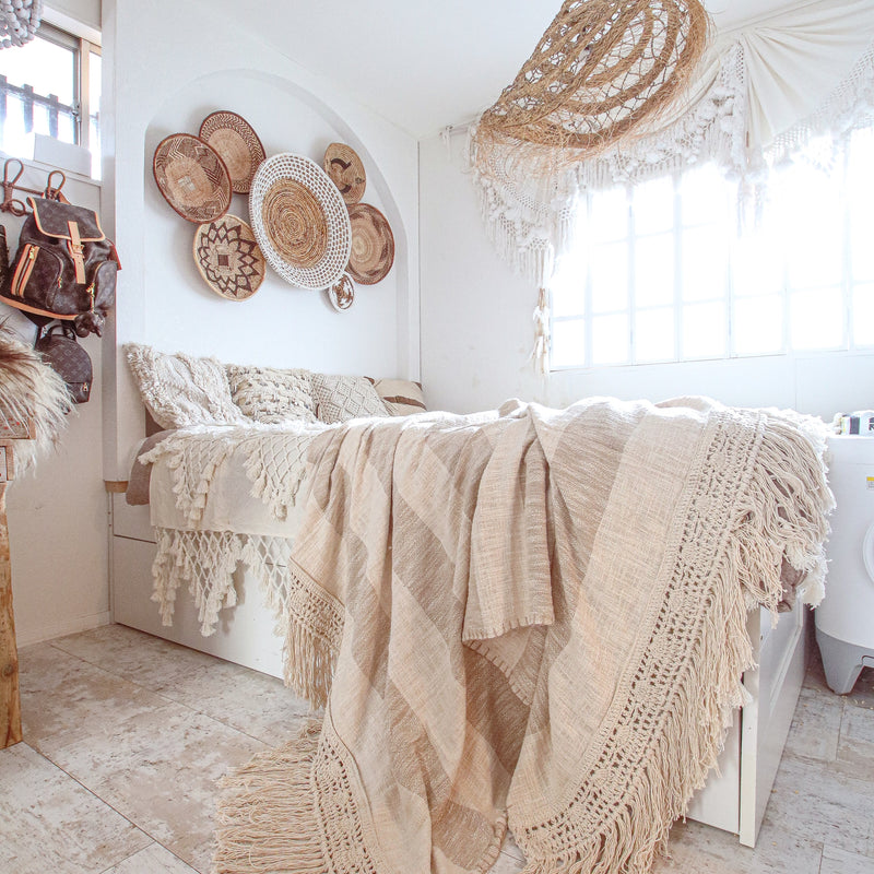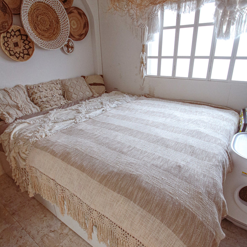 Beige Stripes Macramé Throw Blanket